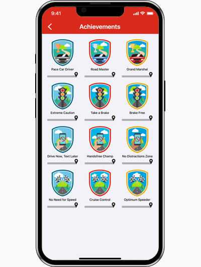 Things like taking three trips without texting or taking five trips without speeding will add to your collection of badges and move you up on the leaderboard.