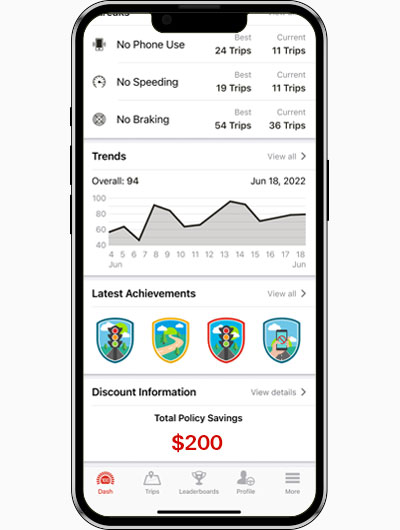 You’ll see speeding, hard braking and phone use for yourself and each enrolled driver on your policy.